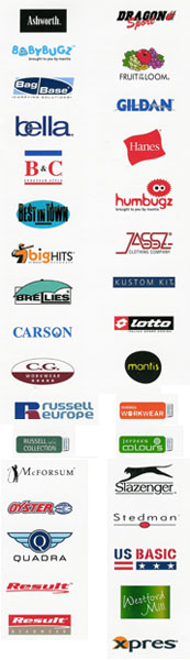 WEBETIKETTEN: Speziell bei größeren Auflagen sind Webetiketten oft günstiger als Stickereien. Im Vergleich zu Stickereien erlauben Webetiketten die Abbildung sehr feiner Details und Buchstaben. Auch Webetiketten werden nachträglich auf die Textilien auf- oder eingenäht.